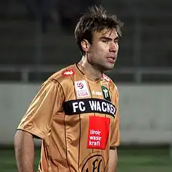 Bea left in July 2009, moving to the second tier with Real Murcia CF, being relegated in his only season and being subsequently released.[4] Aged 32, he had his first experience abroad, signing a 1+1 contract with Austrian club FC Wacker Innsbruck.[5] He made his Bundesliga debut on 18 July 2010, playing the entire 4–0 home win over SK Rapid Wien.[6] His only goal in the competition arrived on 22 September of that year, when he helped to a 4–2 away defeat of Kapfenberger SV.[7]