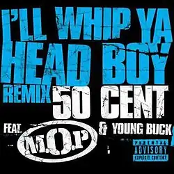 "I'll Whip Ya Head Boy" is a song by American hip hop recording artist 50 Cent, released as the fourth and final single from the soundtrack to the film Get Rich or Die Tryin'. The song features Young Buck and is the closing track on the album. It is played in the intro of the film. The official remix features M.O.P. and was released as a promo single to USA radio stations.