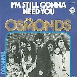 "I'm Still Gonna Need You" is a song performed by The Osmonds in 1975. It is on their 1975 album, The Proud One.[2] Its B-side, "Thank You", is also on the album. It reached No. 38 on the U.S. Adult Contemporary chart and No. 32 in the U.K.[3]