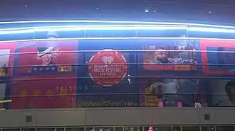 Entertainment Weekly in its review of the inaugural festival called out the rotating stage as a mechanism that kept the show on schedule, noting that the festival "was all about instant gratification" with a general focus on radio hits.[31][32] In 2012, the angry departure of singer Billie Joe Armstrong from the stage after organizers ended the Green Day set prematurely prompted coverage by news outlets such as Billboard, MTV, Fuse and Huffington Post.[33][34][35][36] The year was also noted for a number of duets, including when unexpected performer Prince joined Mary J. Blige for two numbers, when P!nk sang "Just A Girl" with No Doubt, and when Swedish House Mafia teamed up with Usher in performing their song "Euphoria".[2][37] In 2014, Billboard commented on the recent radio successes of the performers on the Daytime Village stage, stating that "With so many performers that had recently broken out of relative obscurity with smash singles, the iHeartRadio Village felt like a Top 40 playlist put on shuffle."[7] In 2014, the Associated Press noted that a few surprises had been mixed with the show's "steady dose of hits", including an appearance of the Black Eyes Peas' Will.I.Am on stage with DJ Steve Aoki and "unexpected appearances" by Alicia Keys and Jason DeRulo.[38]