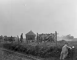 The division crossed to France between 15 and 18 August 1914, concentrated around Maubeuge between 18 and 20 August, and moved forward towards Mons on 21 August.[23] Its first action was the Battle of Mons on 23 and 24 August where the division formed the left flank.[24] It took part in the subsequent retreat, notably the Actions of Elouges and Solesmes, the Battle of Le Cateau, the action at Néry and the First Battle of the Marne.[23]