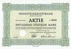 The bank was incorporated under Germany's stock law (Aktiengesetz) in 1945. In 1974 it merged with Deutsche Industriebank to become IKB Deutsche Industriebank.