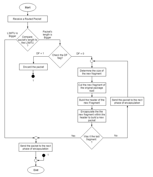 Under IPv4, a router that receives a network packet larger than the next hop's MTU has two options: drop the packet if the Don't Fragment (DF) flag bit is set in the packet's header and send an Internet Control Message Protocol (ICMP) message which indicates the condition Fragmentation Needed (Type 3, Code 4), or fragment the packet and send it over the link with a smaller MTU. Although originators may produce fragmented packets, IPv6 routers do not have the option to fragment further. Instead, network equipment is required to deliver any IPv6 packets or packet fragments smaller than or equal to 1280 bytes and IPv6 hosts are required to determine the optimal MTU through Path MTU Discovery before sending packets.
