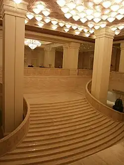 The ITC Grand Chola is a 5-star luxury hotel in Chennai, India.[4] It is located in Guindy, opposite SPIC building and along the same row of buildings as Ashok Leyland Towers. The building, designed by Singapore-based SRSS Architects, is of mixed-use development with three separate wings and is themed after traditional Dravidian architecture of the Chola dynasty.[5] The hotel is the ninth hotel in The Luxury Collection brand.[6]