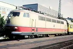 The IVA 65 was the international follow up from the Deutsche Verkehrsausstellung (German transportation fairs) held between 1924 and 1953 in Germany. The focus always had been the German rail traffic and Germany presented the prototypes of the Frankfurt underground rolling stock and the high speed locomotive class E03. The E03 hauled the trains from the Augsburg - Munich service with a scheduled 200 km/h during the exhibition. Besides the railtraffic, navigation, aerospace and roadtraffic got their share in the Bavariapark. The IVA was repeated twice until German reunification. After 1996 the InnoTrans has been held every two years, because of its commercial character these exhibitions have not been recognized by the BIE.