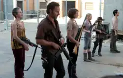 Following The Governor's brief but costly attack on the prison, Hershel wants to abandon it. Merle points out it is too late for that; The Governor has had enough time to block all possible escape routes. Moreover, The Governor can besiege the prison and starve them out. Rick and Glenn, however, argue that the group should stay, even though they don't have enough ammunition to clear out the walkers. Rick begins to walk away causing Hershel to challenge him to get his head clear so that he can lead them. Even Carl sees his father would benefit from some rest, and suggests that he let Hershel and Daryl take charge.