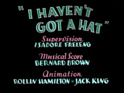 I Haven't Got a Hat is a 1935 animated short film, directed by Isadore Freleng for Leon Schlesinger Productions as part of the Merrie Melodies series.[1] Released on March 2, 1935, the short is notable for featuring the first appearance of several Warner Bros. cartoon characters, most notably future cartoon star Porky Pig. Beans the Cat, a minor Looney Tunes star in 1935-1936, also made his first appearance in this cartoon.[2]