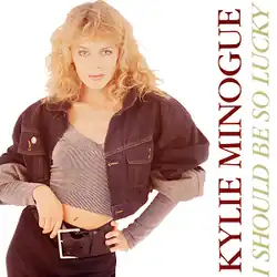 "I Should Be So Lucky" is a 1987 song performed by Australian singer and songwriter Kylie Minogue from her debut studio album, Kylie (1988). Released on 29 December 1987 by Mushroom Records and PWL Records, the song became a worldwide breakthrough hit. The image of Minogue on the front cover of the single was shot by David Levine. The song was written and produced for Minogue by Stock Aitken Waterman, who went on to produce Minogue's initial four studio albums.
