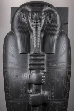 He was buried in a tomb of modest size, TT36, located in the El-Assasif district of the Theban Necropolis, opposite Luxor, in Egypt.[3] It is quite atypical that both the outer and inner sarcophagi were human-shaped and made of stone.[4] The lid of his inner sarcophagus, the only completely preserved part, is exhibited in the Museo Egizio of Turin, Italy.[5]