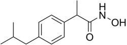 Ibuproxam is a nonsteroidal anti-inflammatory drug (NSAID).It is the hydroxamic acid of ibuprofen to which it is hydrolyzed in the blood. It was found, that ibuproxam is considerably less damaging to the gastrointestinal tract than is ibuprofen. The analgesic and the antipyretic activities are consistent.[1]