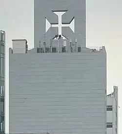 From its southern end, Ice House Street begins at its junction with Lower Albert Road.[3] This is where the Old Dairy Farm Depot is located.[6] Built by Dairy Farm, one of the first companies that sold ice cream and refrigerated milk in the city,[7] it currently houses the Hong Kong Fringe Club and the Foreign Correspondents' Club. Although not officially on the street itself, the Bishop's House is situated across from the depot[6] and overlooks it from an elevated vantage point.[2] It serves as the residence of the Archbishop of Hong Kong (Anglican). The next landmark on the route is the flight of stairs that descend onto Duddell Street and contain four gas lamps from the 1870s that are declared monuments.[6] Before the street intersects with Queen's Road Central, it passes the Club Lusitano. The club, which is the meeting point for Portuguese expatriates in the city, has been located on the site since 1920[8] when it moved down from its original 1866 site in Shelly Street. The building has since been reconstructed twice, in 1967 and 1996-2002[9]