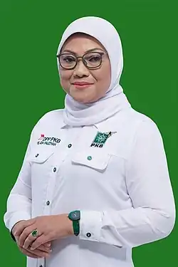Ida Fauziyah (born 17 July 1969)[1] is an Indonesian politician, teacher and women's rights activist of Javanese descent who currently serves as Member of the House of Representatives for Jakarta II since 2024. She previously served as Minister of Manpower in the 41st Cabinet of Indonesia from 2019 to 2024.[2] She is a member of the National Awakening Party.