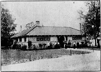 The Idaho Building at the Louisiana Purchase Exhibition in St. Louis, Missouri, in 1904 was a 1-story hacienda designed by architect J. Flood Walker. The building was smallest among the state building exhibits, yet it made a lasting impression on fairgoers. The architect received over 300 requests for architectural drawings of the building in 1904, and the St. Louis Globe-Democrat said of the building, "This is the ideal ranch house that the St. Louis exposition has created, and if remembered for nothing else by western people, the world's fair will always be recalled by the constantly growing number of houses constructed after the fashion of Idaho's pretty building."[1]