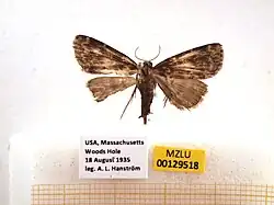 The wingspan is about 25 mm. Adults are on wing from April to September in Maryland and from July to August in Quebec. There is one generation per year in the north, two or more generations on the south.