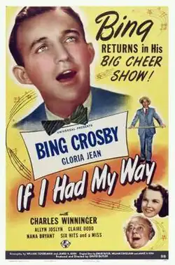 If I Had My Way is a 1940 musical comedy film directed by David Butler and starring Bing Crosby and Gloria Jean.[2] Based on a story by David Butler, the film is about a construction worker who takes charge of the daughter of a friend killed in an accident.