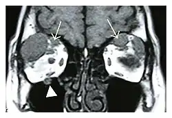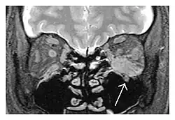 10. ^ J. Ben Soussan; R. Deschamps; J. C. Sadik; J. Savatovsky; L. Deschamps; M. Puttermann; M. Zmuda; F. Heran; O. Galatoire; H. Picard; A. Lecler (19 July 2016). "Infraorbital nerve involvement on magnetic resonance imaging in European patients with IgG4-related ophthalmic disease: a specific sign". European Radiology. 27 (4): 1335–1343. doi:10.1007/s00330-016-4481-5. PMID 27436015. S2CID 645961.