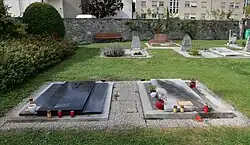 The former graves of Mościcki (left) and of his daughter Helena and son-in-law Aleksander Bobkowski (right) in Versoix.