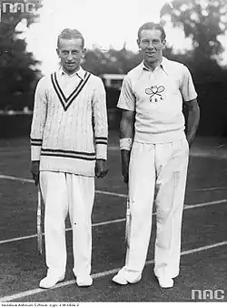 In 1934 he lost the Hungarian International Tennis Championships to Czechoslovakian Ladislav Hecht.[2][11] In 1938 he repeated that feat beating Hebda and won the doubles with Adam Baworowski.[12] In March 1939 he won the doubles of the Monte-Carlo tournament with Józef Hebda, overcoming the Belgian duo of Pierre Geelhand de Merxem and Charles Naeyaert.[13] Just before the outbreak of World War II, in July he won the Polish international championships held in Gdynia in mixed doubles with Jadwiga Jędrzejowska and was a runner-up for the gentlemen's doubles.[14]