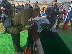 None of these crimes were solved by official investigations.[37] The website of Chechnya's official human rights ombudsman lists several residents of Khatuni who went missing in 2001 (Beslan Durtayev and Supyan Tashayev) as having been kidnapped from their homes and taken to the 45th DRR base by the officers known as "Colonel Proskuryn and Strelkov Igor".[38][39] Another entry lists the missing person Beslan Taramov as abducted in 2001 in the village of Elistandzhi by the 45th DRR servicemen led by "Igor Strelko (nicknamed Strikal)".[40]