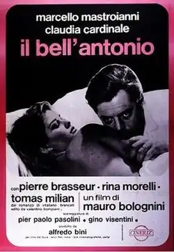 Il bell'Antonio ("Handsome Antonio") is a 1960 Italian-French drama film directed by Mauro Bolognini and starring Marcello Mastroianni and Claudia Cardinale.[1] It is based on the novel of the same name by Vitaliano Brancati and was adapted for the screen by Pier Paolo Pasolini and Gino Visentini, moving the novel's setting during Italy's fascist era to the present.[2]