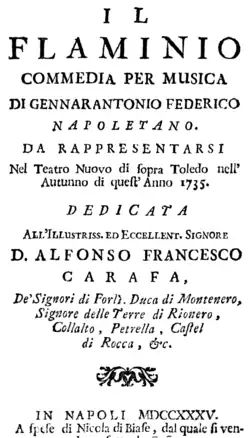 Il Flaminio is a 1735 opera buffa[1] by Giovanni Battista Pergolesi to a Neapolitan libretto by Gennaro Antonio Federico, first performed at the Teatro Nuovo, Naples. Untypically in Pergolesi's difficult and short career the opera was an immediate success and continued to be staged up to 1750.[2]