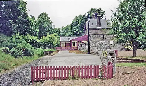 The station opened on 5 September 1887 by the North Eastern Railway. It was situated on the west side of the A697. There were a wide range of buildings (as well as the station building), namely a stone warehouse, coal and lime drops, an office and livestock loading facilities. As well as having these facilities, there were five sidings, one serving the goods shed and three serving a goods platform. In 1911, the station sold 4,279 tickets with the population of the local village being 1,252. The station closed to passengers on 22 September 1930[1] and to goods traffic on 2 March 1953.[2]
