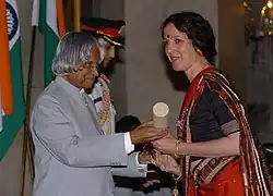 She is also a recipient of the ´Raseshwar Award' given by the Sur Singar Sansad, Mumbai.[8][10] For her contributions to Odissi, she was conferred the Padma Shri by Government of India in 2006.[17] The Italian government made her a member of the Order of the Star of Italian Solidarity in 2008.[5]