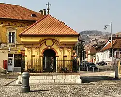 Birt contributed generously to St. Nicholas Church and the affiliated First Romanian School. His request to found a church was denied, so he instead built wayside crosses. Just two of many survive; they are built of stone and were thus more difficult to demolish. One is on Piața Prundului, while the other is by his house, on the street that bears his name. His activity provoked a fifteen-year feud with the Transylvanian Saxon city authorities, in particular the magistrate. Irate that Birt had not asked permission to build, they sought to tear them down. Pointing to his war record and medals, Birt stood his ground. Eventually, in 1761, the crosses were approved on condition they never be enlarged or fenced in.[1]