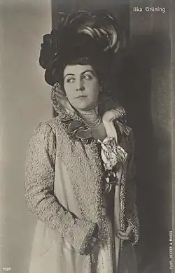 Ilka Grüning (born Ilka Henriette Grünzweig; 4 September 1876 – 11 November 1964) was an Austrian-Hungarian actress. Born in Vienna in the old Austrian-Hungarian Empire, she was one of many Jewish actors and actresses that were forced to flee Europe when the Nazis came to power in 1933. A respected and famous actress of her time in the German-language area, she was forced to play bit parts in Hollywood.