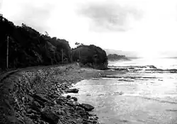 The word "illawarra" is derived from the Aboriginal Tharawal word "allowrie," also sometimes spelled as "elouera" or "eloura." According to A. W. Reed, the word is variously translated as "pleasant place near the sea" or "high place near the sea."[2][3] The prefix of "illa" is also known to mean "white clay;" with the suffix "warra," sometimes spelled as "wurra," meaning "mountain" in the local indigenous language.[3] George Bass and Matthew Flinders were the first Europeans to visit the area, with Flinders recording that it 'was called "Allowrie" by the natives'.[2]