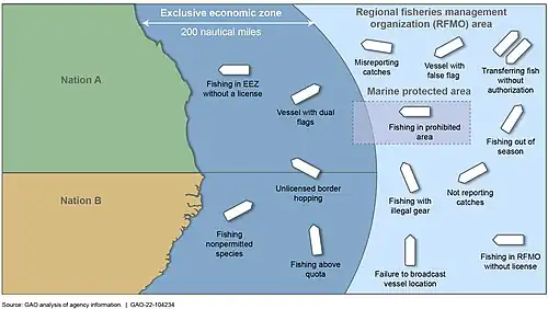 1. ^ "What is IUU fishing?". Food and Agricultural Organization for the United Nations. Retrieved 2025-07-19.