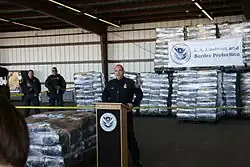 In 2021, around 80,411 people died from opioid overdoses in the US.[22] Many of the deaths are from an extremely potent opioid, fentanyl, which is trafficked from Mexico.[23] The drug is usually manufactured in China, then shipped to Mexico, where it is processed and packaged, which is then smuggled into the US by Mexican drug cartels.[24]