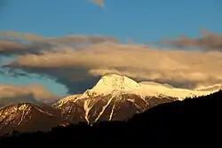 The Illgraben catchment extends from the summit of the Illhorn to the Rhone at an elevation of 610m, and experiences debris flows and mud slides several times annually.[2][3] The largest recorded debris flow in the valley occurred in June 1961, and had a volume of several hundred thousand cubic metres. A warning system gives alert signals 5–15 minutes before the arrival of debris flows at channel crossings.[4] The area is a popular hiking spot and these geomorphological processes are visible most years.[5]