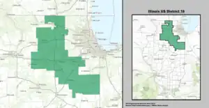 After the 2010 census, the 16th was significantly redrawn for the first time in decades. It was pushed to the east to include the southwestern exurbs of the Chicago metropolitan area, stretching from the Wisconsin border to the Indiana border. While it still included most of Rockford's suburbs, half of Rockford itself (mainly the Democratic-leaning western portion of the city) was shifted to the 17th district. The district was significantly redrawn again after the 2020 census, essentially merging the more Republican portions of the old 16th and 18th districts.