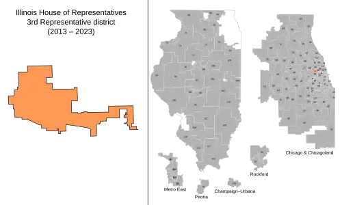 16. ^ "STATE LEGISLATIVE DISTRICT REFERENCE MAP (2022): Illinois - State House District 3" (PDF). United States Census Bureau. October 12, 2022. Retrieved January 24, 2023.