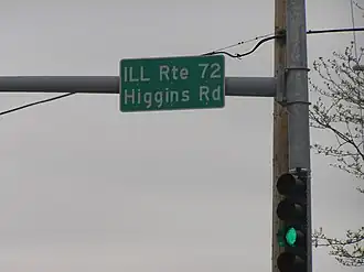 Illinois Route 72 cross-sign mounted on a stoplight in Hoffman Estates