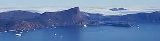 The base of the peninsula, shared with the neighboring Nuussuaq Peninsula, is a nunatak located at 74°22′30″N 56°00′00″W / 74.37500°N 56.00000°W, and rising to 280 m (920 ft) above the Greenland ice sheet (Greenlandic: Sermersuaq) reaching the sea level to the south and north of the nunatak. The peninsula has an east–west orientation, jutting westwards into Inussulik Bay.[1]