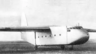 The Ilyushin Il-32 was a Soviet heavy military glider developed after World War II to deliver 7,000 kg (15,000 lb) of cargo. To facilitate loading and unloading, the glider's nose and tail sections were hinged to swing sideways. The Il-32 required a four-engined aircraft to tow it safely; it was canceled when it became clear that no such tug was going to be available after the Tupolev Tu-75 and Ilyushin Il-18 programs were both canceled because of shortages of their intended Shvetsov ASh-73 engines.