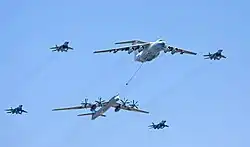 An Ilyushin Il-78 simulating aerial refuelling with a Tu-95MS during the Victory Day Parade in Moscow on 9 May 2009