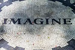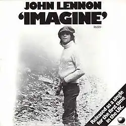 "Imagine" is a song by the English musician John Lennon from his 1971 album of the same name. The best-selling single of his solo career, the lyrics encourage listeners to imagine a world of peace, without materialism, without borders separating nations and without religion. Shortly before his death, Lennon said that much of the song's lyrics and content came from his wife, Yoko Ono, and in 2017, she received a co-writing credit.[2][3][4]