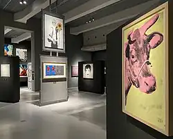 The museum's first temporary exhibition, "Andy Warhol and Mario Schifano between Pop Art and Classicism", is hosted on Floor C and includes 101 works by Andy Warhol,[12][13] including serigraphs, prints, photographs, drawings, posters, posters and magazine covers and over three hundred works by the Italian artist Mario Schifano,[14][15] consisting of photographs, canvases and charcoals, also including the pictorial cycle of the "Matres Matutae", the last to have been made by the artist between 1995 and 1996.[16] As part of the exhibition, the cycle is compared with the pre-Roman statues of the Matres Matutae, which Schifano was inspired by for the realization of the work, obtained on loan from the Campania Provincial Museum of Capua.[17]
