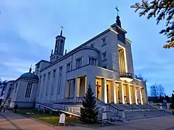 After the war the printing house in Niepokalanów was reopened. The Knight of the Immaculate was issued again, as also some books, dedicated to St Maximilian (e.g. Dwie Korony [Two Crowns] by Gustaw Morcinek). In 1948-1954 there was built a new church in the modernist style[2] according to the design of the architect Zygmunt Gawlik from Cracow. In June 1950, by the decree of cardinal Stefan Wyszynski, a new parish in Niepokalanów was established (7500 faithful circa).[10]