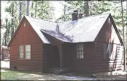 The Imnaha Guard Station is located in the Rogue River-Siskiyou National Forest between Butte Falls, Oregon and the unincorporated town of Prospect, Oregon. It was built near Imnaha Springs by the Civilian Conservation Corps in 1939. The guard station was originally used as a barracks for Forest Service fire fighters that patrolled the surrounding forest during summer fire season. The Forest Service used the cabin to house fire crews through the 1970s.[3][4][5] From 1970 through 1985, John (Bob) Poet and his family lived in the guard station during the summer. Poet later wrote a book about his experience at the Imnaha Guard Station.[6] During the late 1980s and early 1990s, Forest Service volunteer campground hosts stayed in the cabin during the summer. In the mid-1990s, the Forest Service began renting the cabin to recreational visitors.[4][5]
