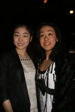 As early as 2005, it was reported that Kim's success boosted the popularity of figure skating in South Korea, where she was called "Queen Yuna".[4][5] As Philip Hersh stated shortly before the 2010 Olympics, no other figure skater was as celebrated as Kim was in her country.[7] She was called South Korea's second greatest athlete, behind Olympic goal medal marathoner Sohn Kee-Chung[5] and "one of the most iconic sports stars in Korea",[21] and was considered South Korea's "daughter".[7] In 2005, former skater and Kim's coach, Chi Hyun-jung, stated that Kim's success served as a turning point for skating in South Korea and expressed the hope that it would produce more competitors there.[4] In 2020, her coach, Brian Orser, said that Kim's performances at the 2010 Olympics were among the greatest ever and that she inspired thousands of South Korean girls to take up figure skating. In 2003, when Kim won her first South Korean national title, eight senior women competed there; in 2020, 32 women competed as seniors and 24 competed as juniors at the South Korean Championships, and the highest nine senior women all performed a triple Lutz-triple toe loop combination in the free skate. The 2020 South Korean champion, You Young, stated in 2016 that Kim inspired her to become a figure skater.[5]
