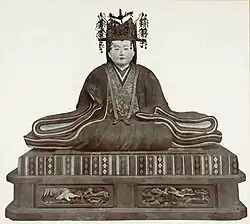 Higuchi Motoyasu then suggested that the crown worn by the statue of Tōfukumonin (Tokugawa Masako), the mother of Empress Meishō, at Kōunji Temple in Higashiyama, be used as a reference, and this suggestion was adopted.[1]