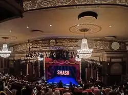 Billy Elliot the Musical opened in November 2008[216] and ran for slightly over three years.[217][218] It was followed by Nice Work If You Can Get It in 2012; 700 Sundays in 2013; a revival of Les Misérables in 2014; Natasha, Pierre & The Great Comet of 1812 in 2016; and Carousel in 2018.[15][16] American Idol season 2 competitors Ruben Studdard and Clay Aiken performed at the Imperial for a Christmas special in 2018,[219][220] and the musical Ain't Too Proud opened in March 2019.[221][222] Ain't Too Proud achieved the box office record for the Imperial Theatre, grossing $1,865,016.90 over eight performances for the week ending December 29, 2019.[223] The theater closed on March 12, 2020, due to the COVID-19 pandemic.[224] In 2021, the Shuberts sold the air rights above the Imperial to Extell Development Company for $51 million, at the time a record high price for air rights in the area.[225][226] The theater reopened on October 16, 2021, with performances of Ain't Too Proud,[227] which ran until January 2022.[228] The Imperial's next production, Andrew Lloyd Webber's musical Bad Cinderella, opened in March 2023[229][230] and closed that June.[231] This was followed in March 2024 by the musical Water for Elephants,[232][233] which closed that December after 301 performances.[234] Smash, the musical adaptation of the TV series of the same name, opened at the theater in April 2025,[235][236] running for 84 performances.[237] A revival of Chess is expected to open at the Imperial Theatre in November 2025.[238]