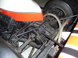 An inboard brake is an automobile brake mounted on the chassis of the vehicle, rather than directly on a wheel hub. It began with drum brakes and evolved to disks, and creates a reduction in the unsprung mass (by relocating the brake discs and calipers from the wheel hubs to rear drive components). It also improves brake performance by applying its force directly to the chassis, rather than being transferred to it through the suspension arms.[1]