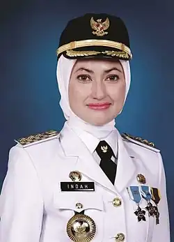 Indah Putri Indriani is an Indonesian politician and the current regent of North Luwu Regency.[1] She was also the deputy regent of North Luwu from 2010 to 2015.[2]