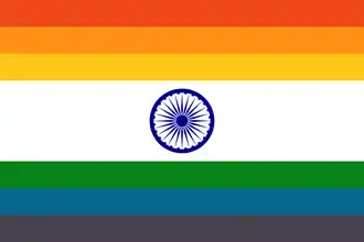 ![]() Unofficial pride flag representing the LGBT community of India | |