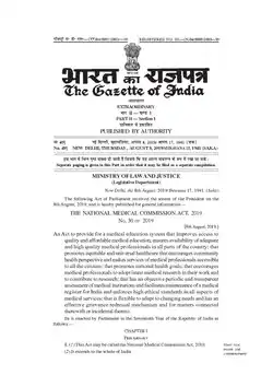17. ^ a b "THE NATIONAL MEDICAL COMMISSION BILL, 2019" (PDF). 29 July 2019. Archived from the original (PDF) on 20 September 2021. Retrieved 9 May 2021.